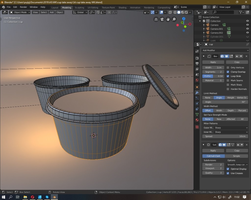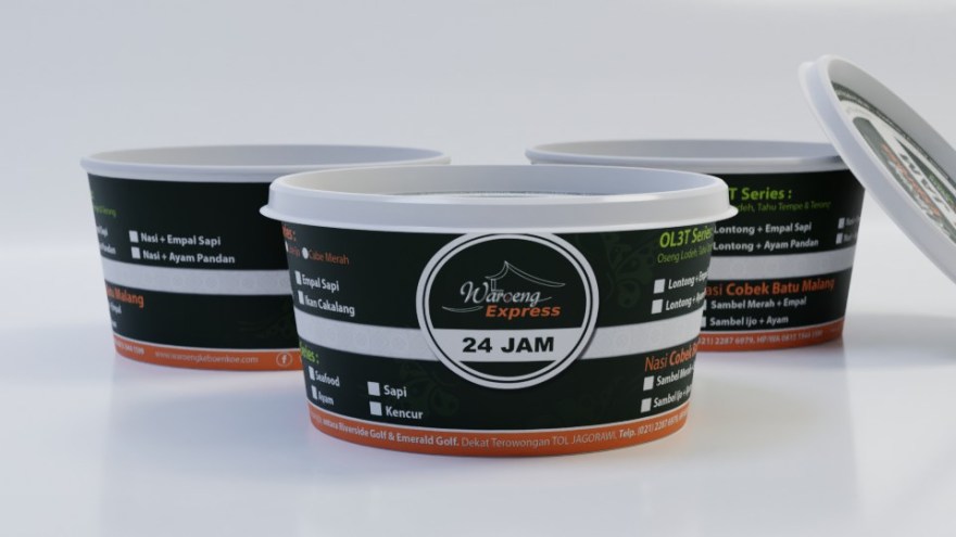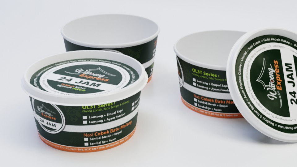 Untuk mendesign paper bowl kali ini, pertama saya buat di photoshop dulu (tampak sisi atas dan sisi samping) dan sudah sesuai ukuran mangkok yg mau dicetak. Lalu kemudian saya buat mockup menggunakan program 3d (blender), yang mana mockup tersebut akan digunakan sebagai tampilan akhir design kita nanti.